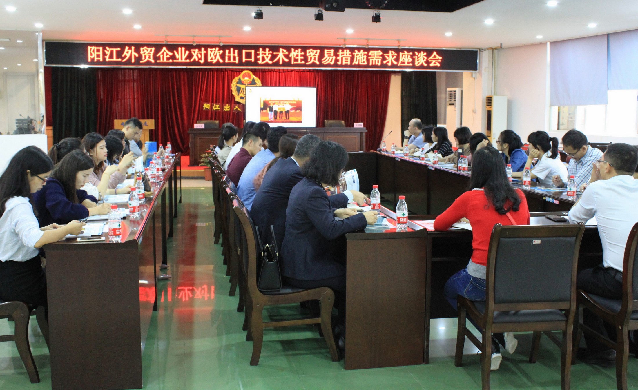 11月14日,阳江局联合阳江市进出口商会共同举办阳江外贸企业对欧出口技术性贸易措施需要座谈会,30余家五金刀剪进出口企业代表参加座谈。